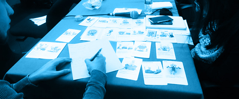 Lynn Hughes and Nina Czegledy conceived an analogue card game—later called the Different Abilities project—at the Technoculture Art and Games (TAG) lab, Hexagram, Concordia University, Montreal. The proposed a card game aimed at exploring ideas and issues related to various physical and mental abilities/disabilities. “Ability Jam” the first brainstorming event took place on May 2nd - 3rd, 2014 at Concordia University. Following thematically related presentations and a participatory discussion group participants preceded to prototype various games. The results of “Ability Jam” were so promising that a decision was made to further develop the idea. Concurrently, Lynn Hughes was invited to curate a games related exhibition and workshop the Different Abilities card game at Transitio_MX 06 in Mexico City.